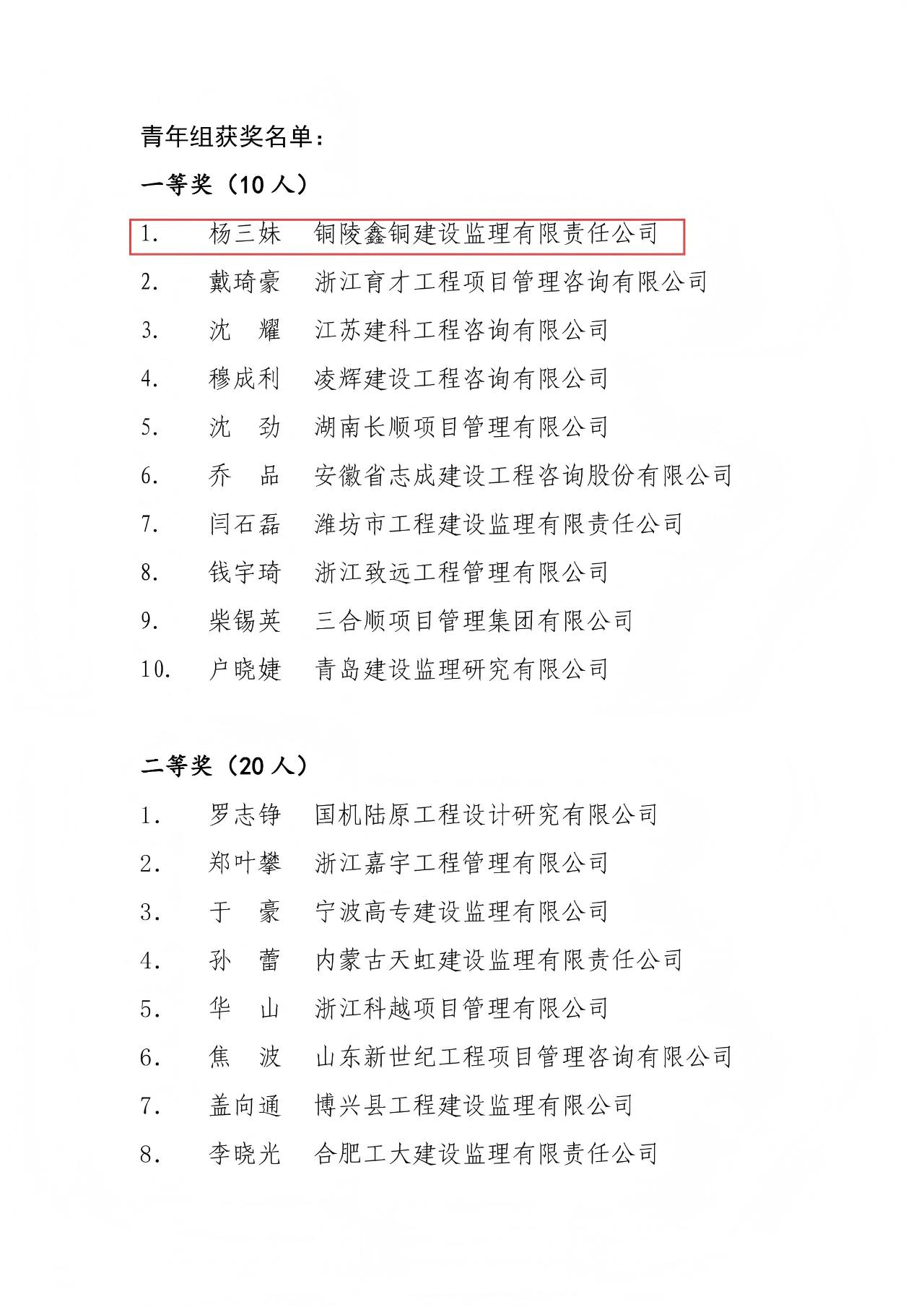 日前,由中国建设监理协会主办的第二届全国工程监理知识竞赛在湖北武汉举行,公司3名选手参加比赛并全部获奖。公司员工杨三妹在竞赛青年组中荣获一等奖第一名。公司员工周宇、杨涛分获企业技术负责人组、总监理工程师组三等奖,公司还荣获优胜单位奖,充分展现了公司在工程监理领域综合实力和企业美誉度。