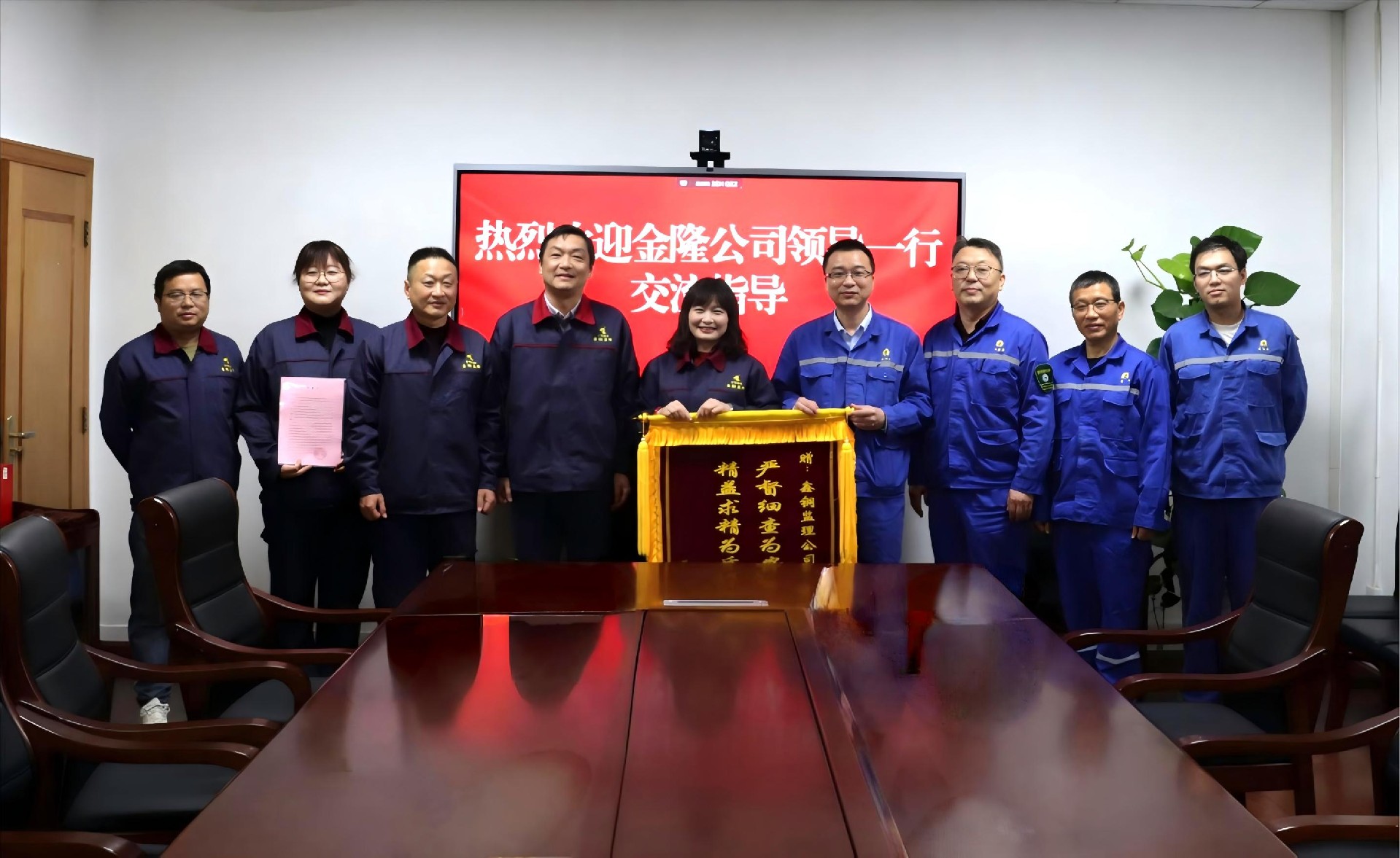 座谈结束后,谢剑才代表金隆铜业向公司赠送了锦旗和感谢信,对公司在大修期间的辛勤付出表示诚挚谢意。